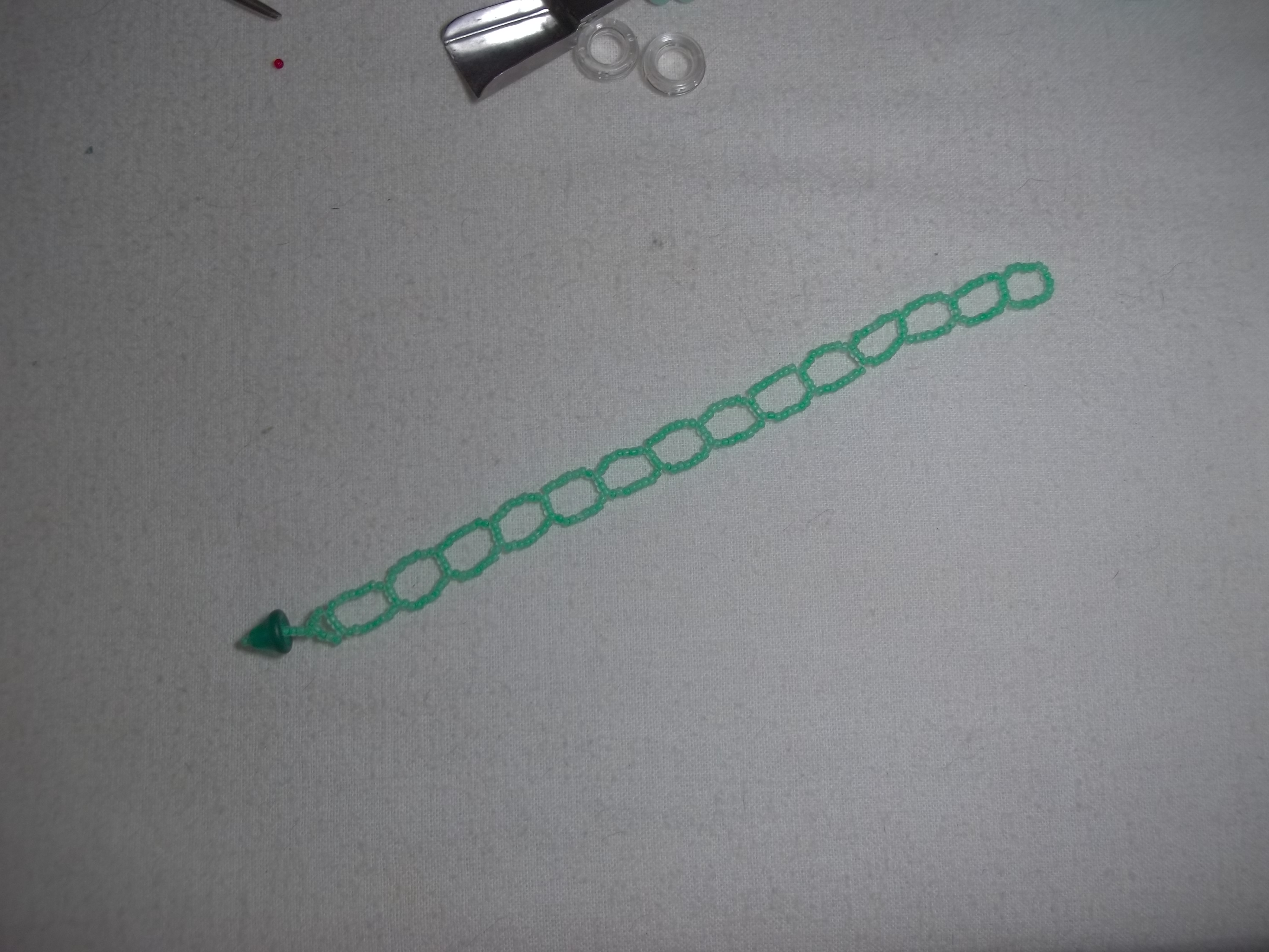 Right Angle Weave Rectangles 06/09/2014Karen Right Angle Weave 1 Comment It occurred to me that Right Angle Weave doesn’t always have to be made with squares. Rectangles have right angles, too. I used 4 beads on each short side and 8 beads on each long side. The lines aren’t very straight, though. Share this:Tweet Click to email a link to a friend (Opens in new window) Email Share on Tumblr Click to share on Reddit (Opens in new window) Reddit PocketLike Loading... Related