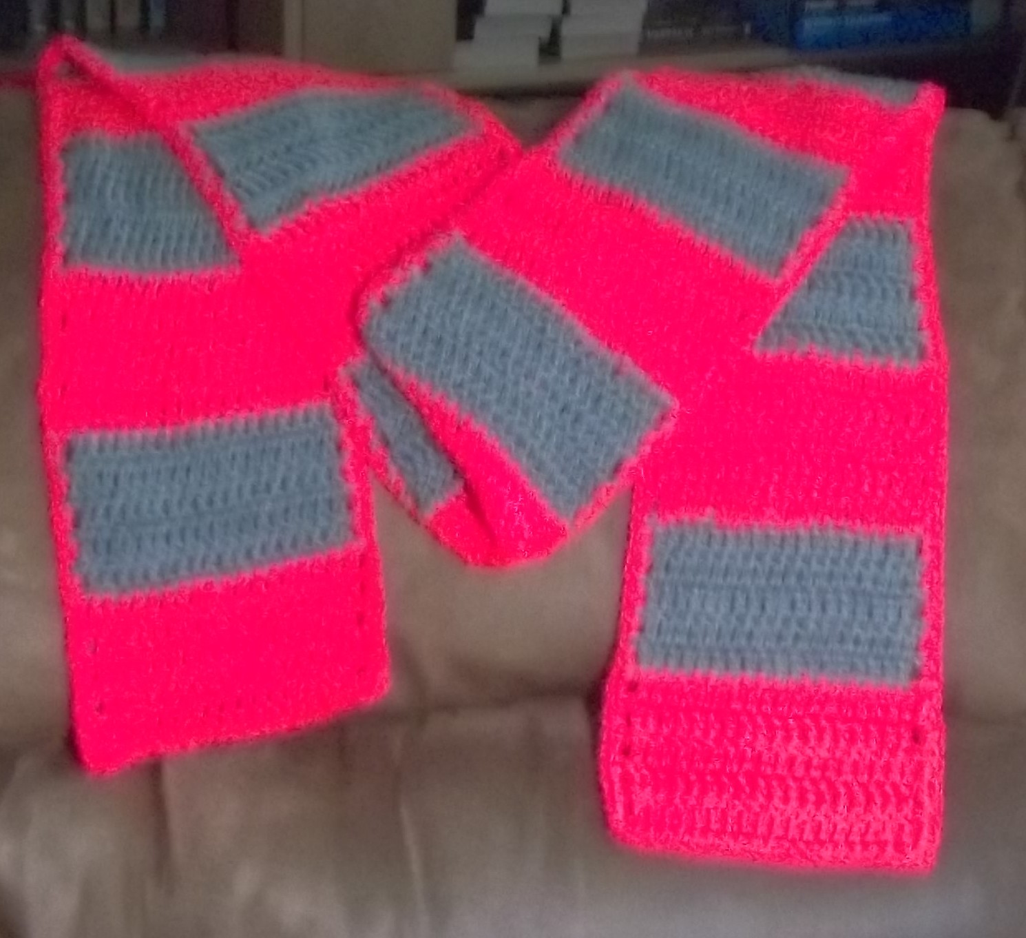 One thought on “Neon Coral and Grey Scarf