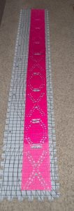 Mom got me this blocking set for Christmas. Here, I’m using it for the first time! This is the display scarf for my next pattern, Hugs and Kisses, a scarf for Valentine’s day. Have the rough draft done. Hope to finish it by next Saturday.