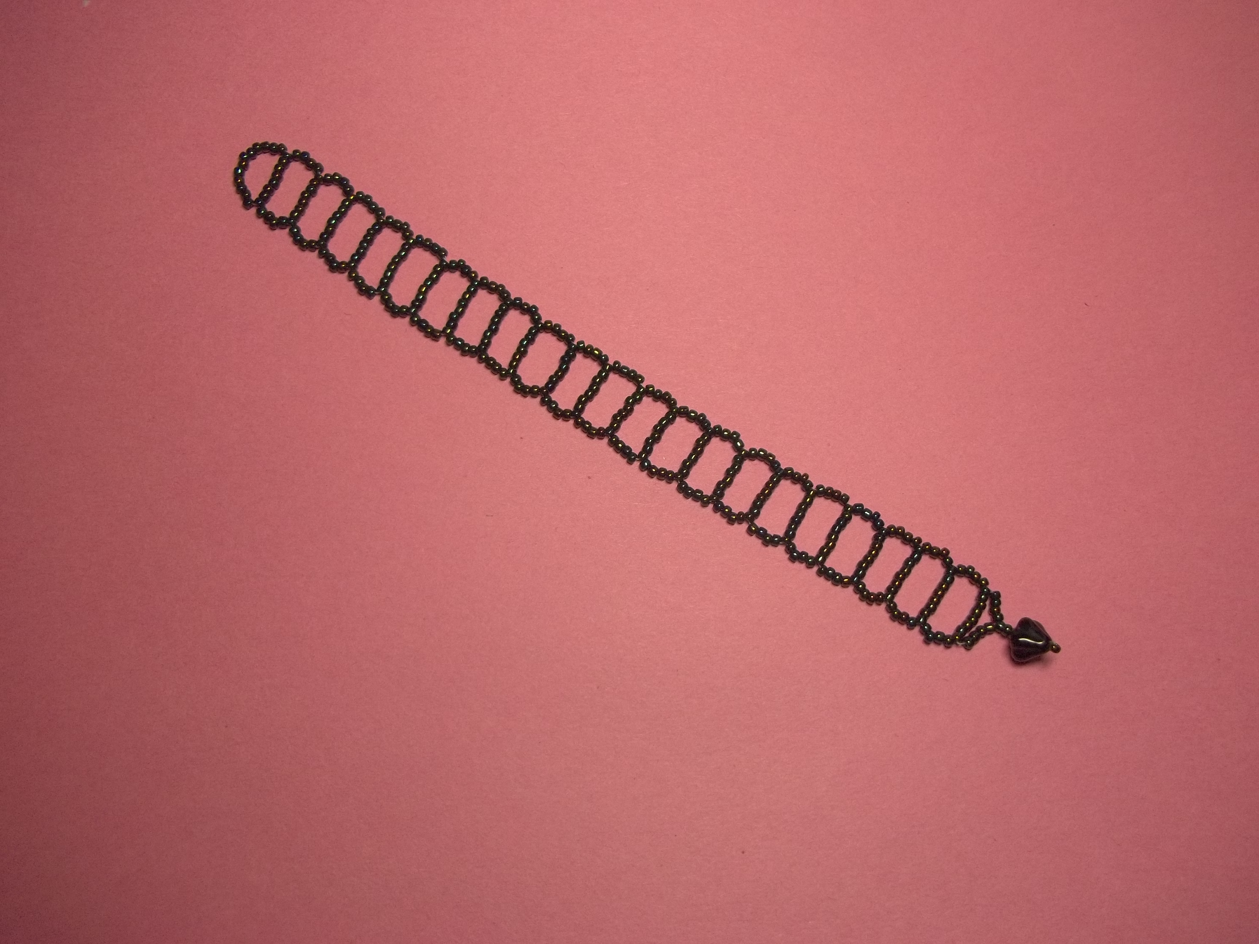 This bracelet is done in Right Angle Weave stitch, in rectangles. The dimensions are the same as the last right angle weave bracelet, only I switched the long and short sides.