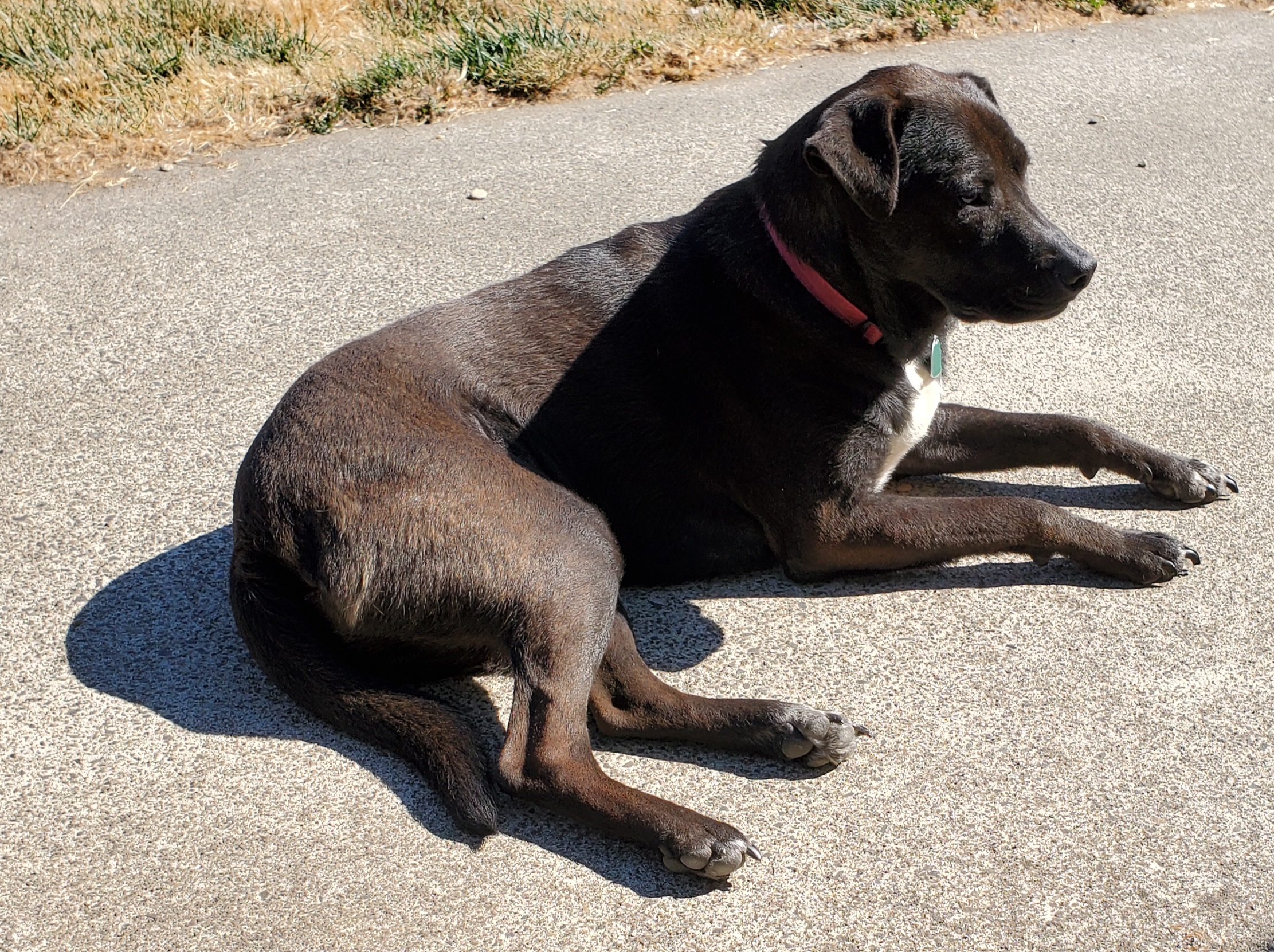 On Monday it was 111 degrees before noon. I had frozen a bowl of water to put in front of my little fan. Brady kept licking the ice. I checked, and he had a bowl full of clean, cool water. I guess he really likes ice.