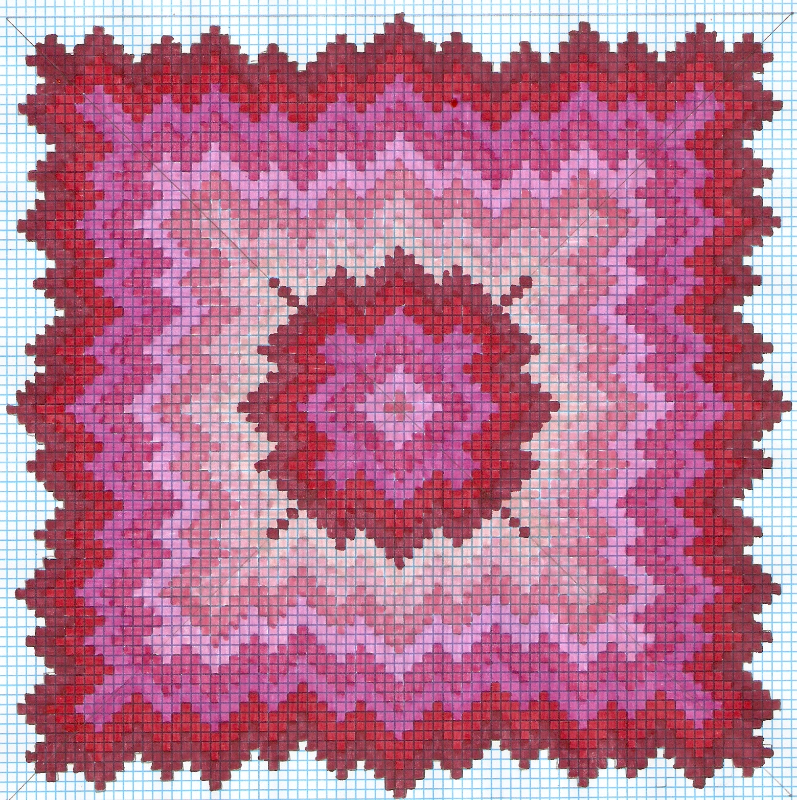 This bargello is drawn on graph paper that I got off of www.freeprintable.net.